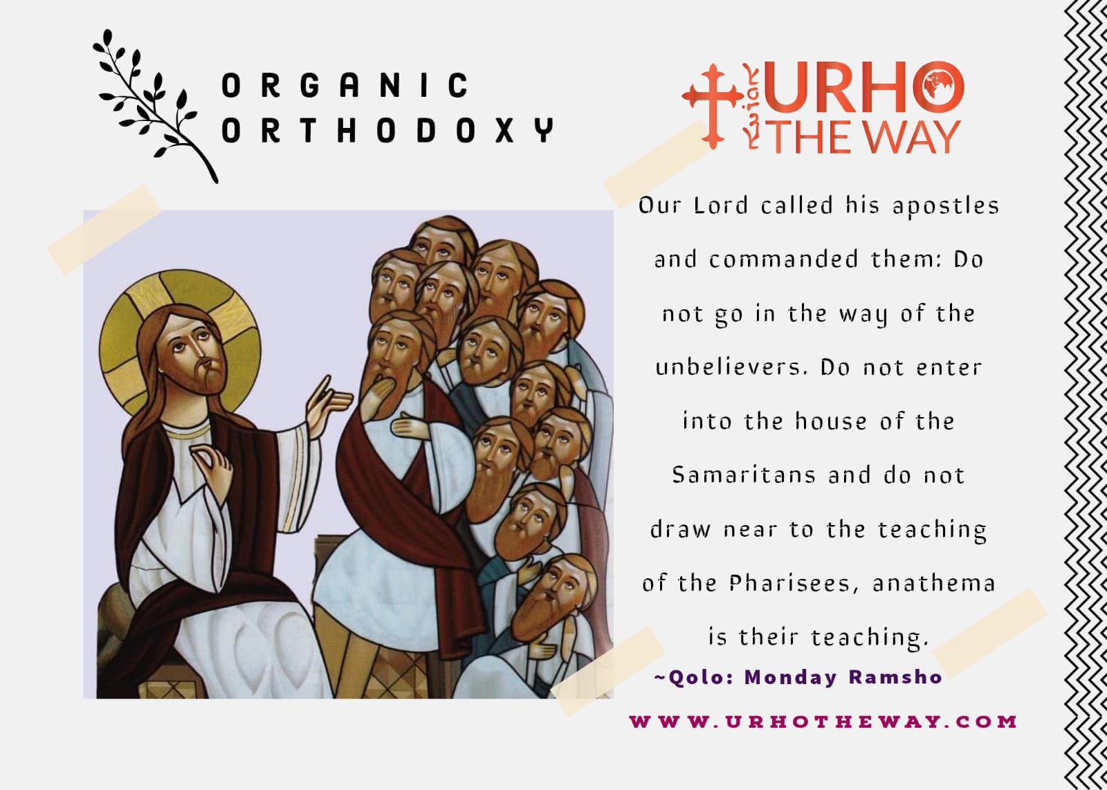 Our Lord called his apostles and commanded them: Do not go in the way of the unbelievers. Do not enter into the house of the Samaritans and do not draw near to the teaching of the Pharisees, anathema is their teaching.