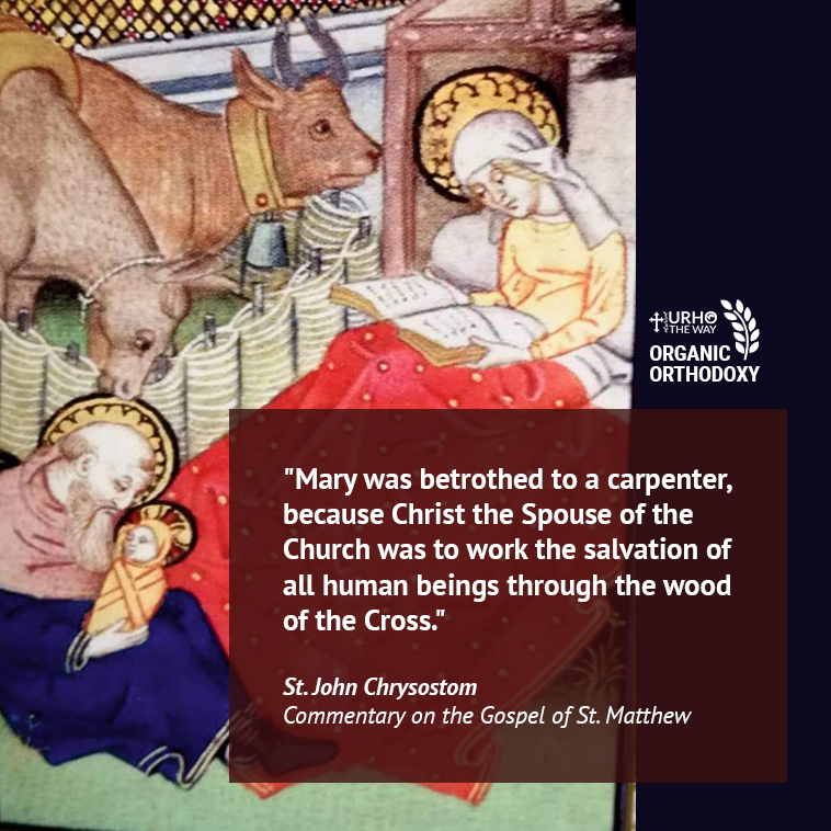Christ the discarnate 𝘓𝘰𝘨𝘰𝘴, by becoming a fully material human being unveiled the redemptive potential of matter. Christ through His earthly sojourn hallowed the land by walking on it, sanctified the waters by His baptism, and purified the air by His crucifixion. It is plausible that the Saviour of Creation might have chosen Joseph the carpenter because of his niche to creatively use matter. As St. John Chrysostom notes; “Mary was betrothed to a carpenter, because Christ the Spouse of the Church was to work the salvation of all human beings through the wood of the Cross.”