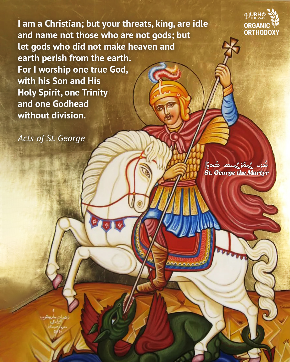 The earliest document speaking of St. George the Martyr is the 𝘈𝘤𝘵𝘴 𝘰𝘧 𝘚𝘵. 𝘎𝘦𝘰𝘳𝘨𝘦. Originally written in Greek in the 5th century and later translated to Syriac (which is the only one that prevails ). This document employs snake ( or to be precise asp-serpent ) as an epithet for Emperor Dadianus owing to his obstinacy in not repenting despite his wife Alexandra dying a martyr for Christ. It was only post 10th century, on account of western influence, that the paintings and icons of St. George began portraying a dragon in lieu of a serpent seeking a collaboration with Rev. 12:7.